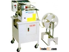 The machine adopts microcomputer control device, set the cutting length, cutting knife with heating device, can heat the ribbon incision consolidation, do not produce burrs, operating model design accord with human body engineering principle, easy to operate.